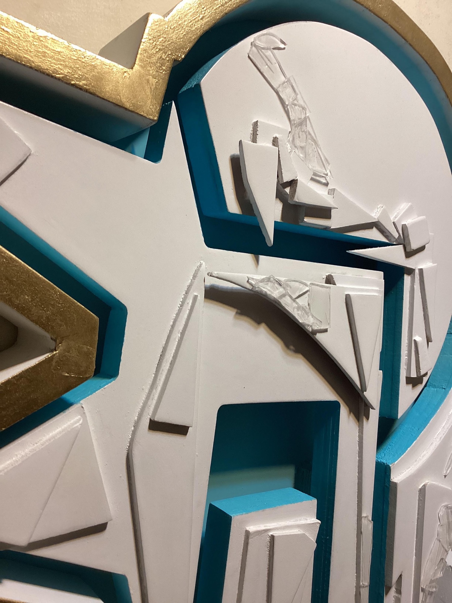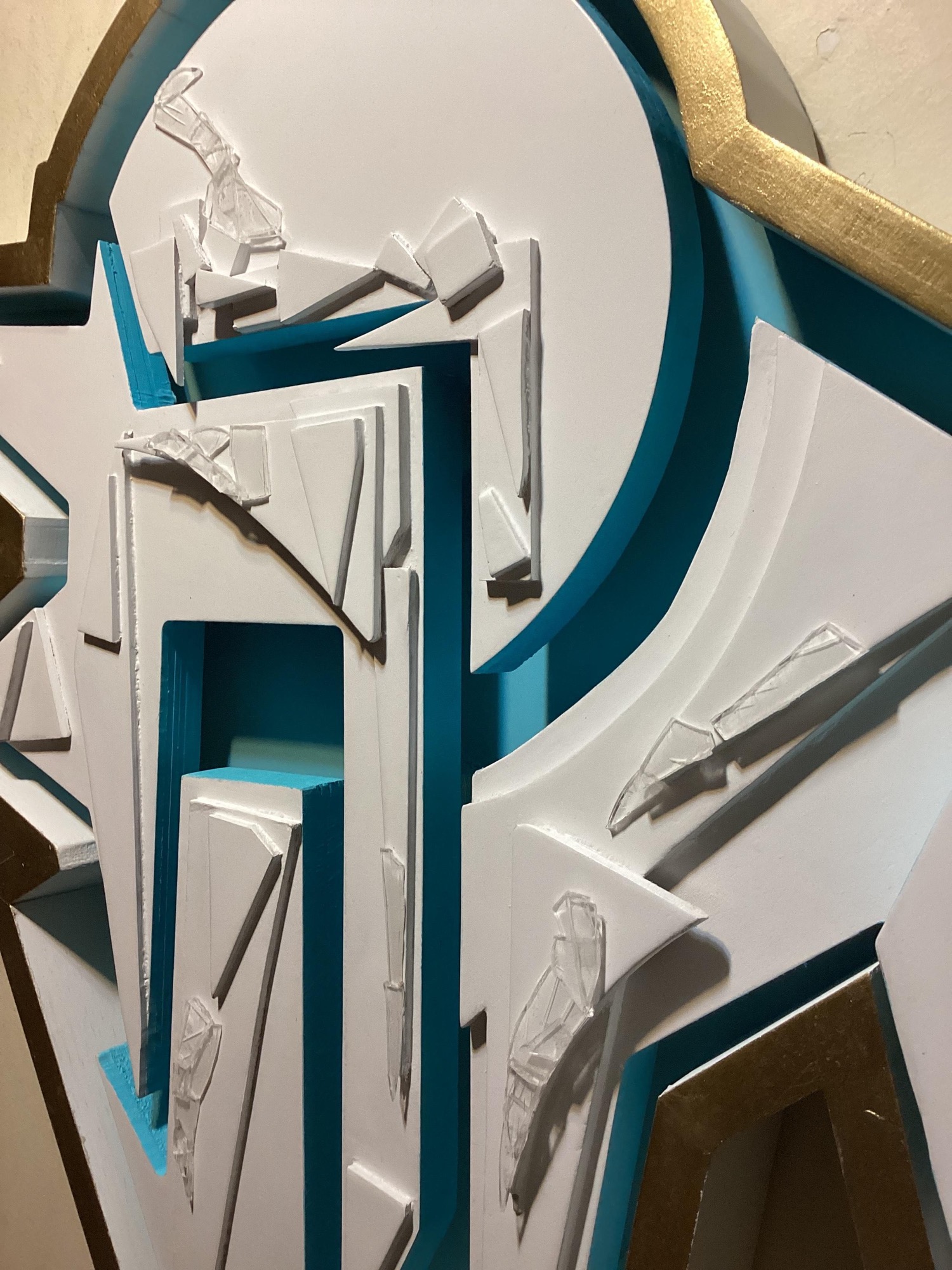 The art deco- like design is inspired by an icicle formations. The small shapes represent the movement of ice when the water freezes